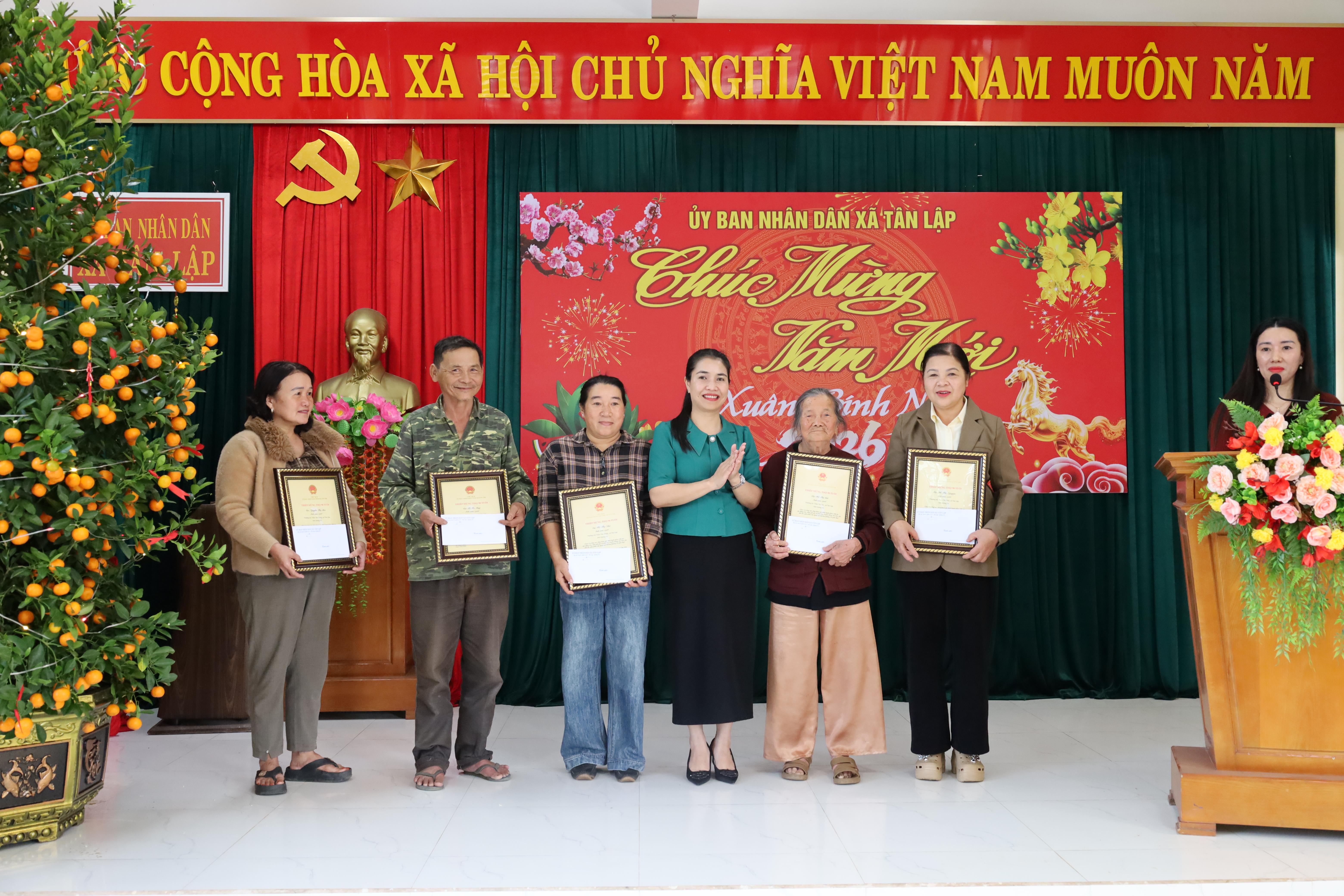 Chiều ngày 12/02/2026, UBND xã Tân Lập đã tổ chức trao thiệp chúc thọ 90 tuổi và tặng quà cho các hộ gia đình có hoàn cảnh khó khăn nhân dịp Tết Nguyên đán Bính Ngọ 2026.