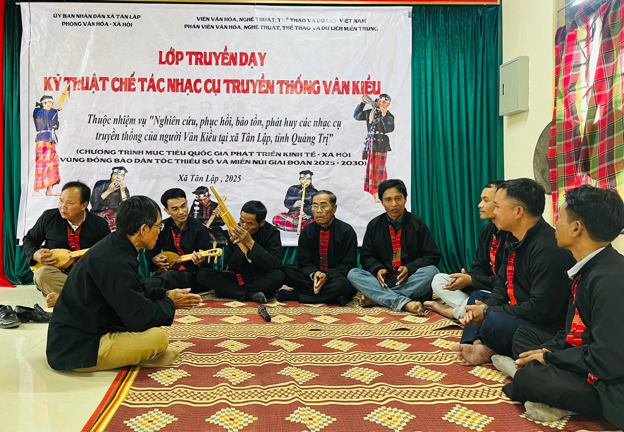 Lớp truyền dạy thuộc nhiệm vụ nghiên cứu, phục hồi, bảo tồn và phát huy các nhạc cụ truyền thống của người Bru Vân Kiều tại xã Tân Lập, nằm trong khuôn khổ Chương trình mục tiêu quốc gia phát triển kinh tế – xã hội vùng đồng bào dân tộc thiểu số và miền núi giai đoạn 2021–2025. Trong thời gian hơn 4 ngày, các học viên được các nghệ nhân am hiểu sâu sắc nghề chế tác nhạc cụ truyền thống trực tiếp truyền đạt kiến thức, chia sẻ kinh nghiệm và hướng dẫn thực hành. Nội dung lớp học tập trung vào kỹ thuật chế tác một số nhạc cụ tiêu biểu như khèn, trống, đàn Pa lứa, đàn Ta lư; qua đó giúp học viên từng bước nắm vững kỹ thuật cơ bản và hiểu rõ hơn giá trị văn hóa, tinh thần của nhạc cụ trong đời sống sinh hoạt cũng như các nghi lễ, lễ hội truyền thống.