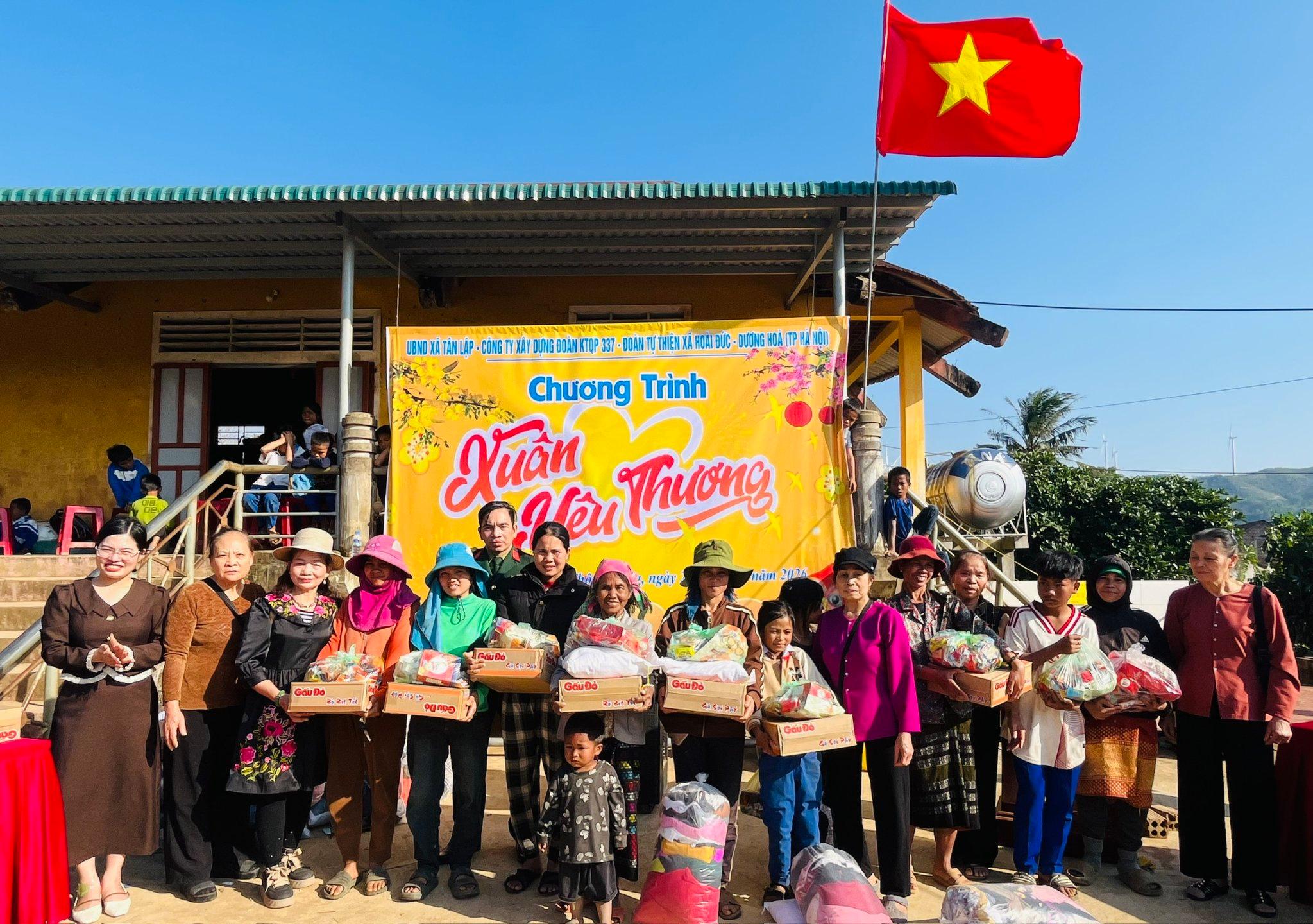 Trong không khí phấn khởi đón Xuân mới, phát huy truyền thống đoàn kết, tinh thần “Tương thân tương ái”, Ngày 20/01/2026, Ủy ban nhân dân xã Tân Lập đã phối hợp với Công ty Xây dựng - Đoàn Kinh tế Quốc phòng 337 và Đoàn thiện nguyện xã Hoài Đức, xã Dương Hòa (TP Hà Nội) tổ chức chương trình Trao quà Tết với chủ đề “Xuân yêu thương” dành cho các hộ gia đình có hoàn cảnh khó khăn trên địa bàn thôn Cheng và bản Cồn, xã Tân Lập.