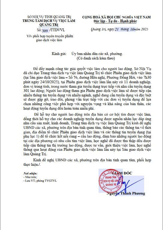 Tuyên truyền phiên giao dịch việc làm của Trung tâm Dịch vụ việc làm Quảng Trị